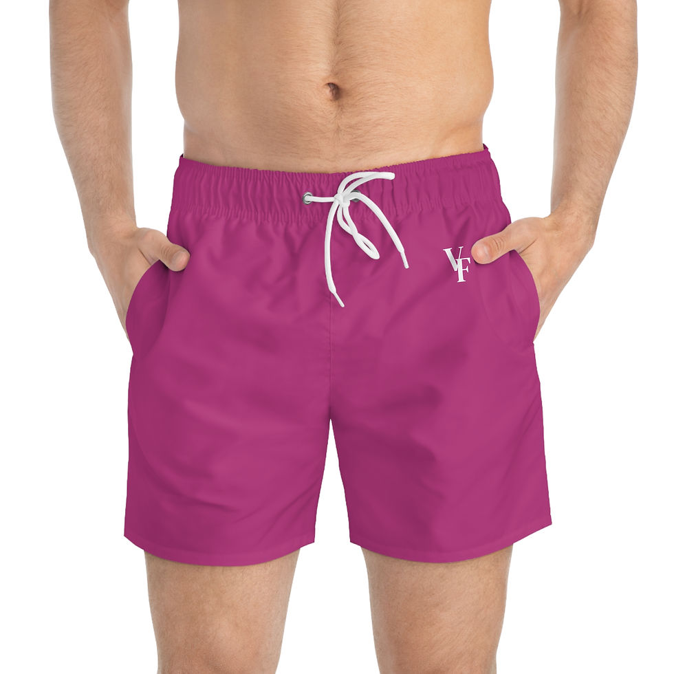 Men's Magenta Swim Trunks with Small VF Logo — Quick-Dry Beach Shorts